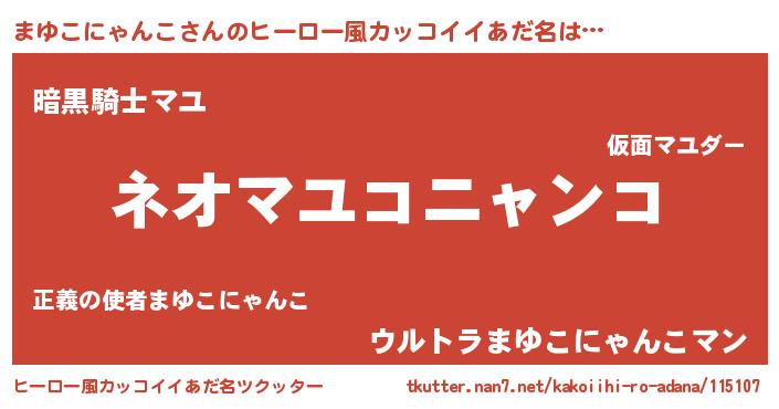 | 男性向けラノベタイトル風あだ名 | 『誰もが恐れるあのまゆこにゃんこが、ぼくの専属メイドになるようです。』 |