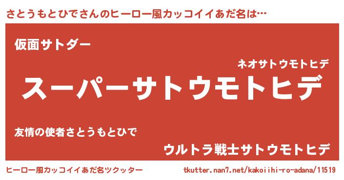 | 男性向けラノベタイトル風あだ名 | 『サトウモトヒデアートオンライン』 |