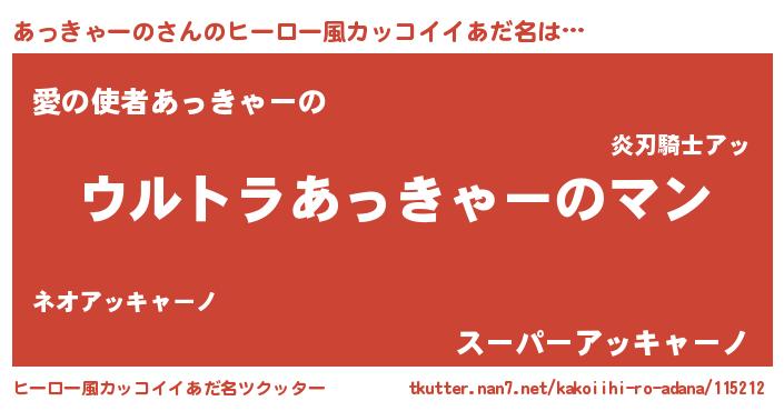| 男性向けラノベタイトル風あだ名 | 『やはりあっきゃーのの青春ラブコメはまちがっている 』 |