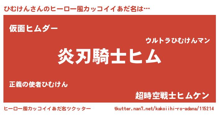 男性向けラノベタイトル風あだ名 | 『うちのひむけんが世界を掌握している!』 |