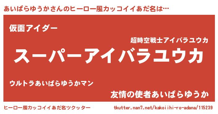 | 男性向けラノベタイトル風あだ名 | 『あいばらゆうかの憂鬱』 |