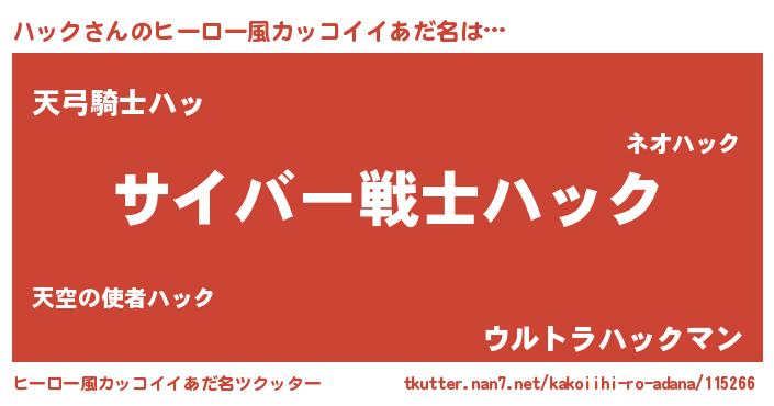 | 意味不明あだ名 | 『自称ハック』『とにかく怪しいハック』 |