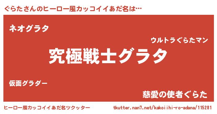 | 胡散臭い通販商品みたいなあだ名 | 『芸能人もオススメする高麗人参…その名も「ぐらた」』 |