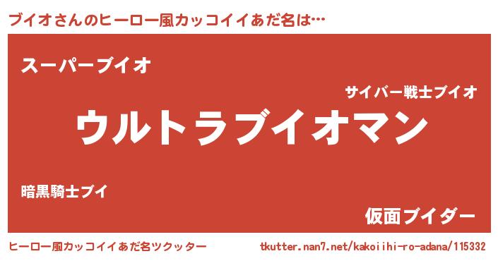 | 男性向けラノベタイトル風あだ名 | 『やはりブイオの青春ラブコメはまちがっている 』 |