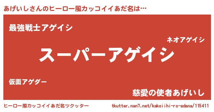 | ファンタジー風あだ名 | 『アゲフェル』『ゼアゲトゥ』 |