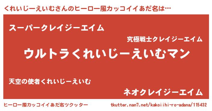 | 意味不明あだ名 | 『くれいじーえいむフォーエバー』 |
