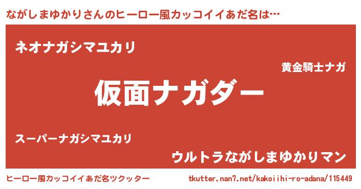 | 男性向けラノベタイトル風あだ名 | 『魔弾の王とながしまゆかり』 |