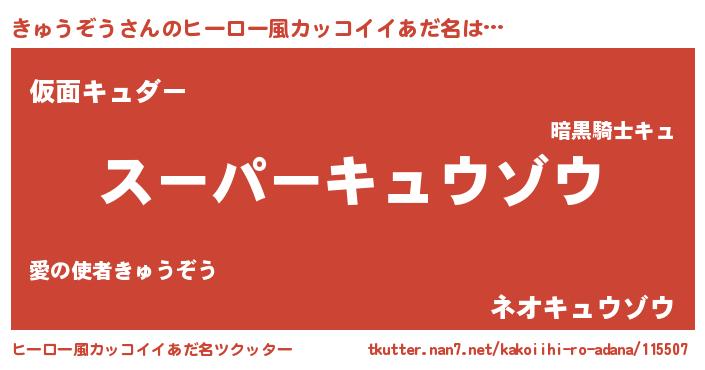 | 胡散臭い通販商品みたいなあだ名 | 『億万長者になれるブレスレット…その名も「きゅうぞう」』 |