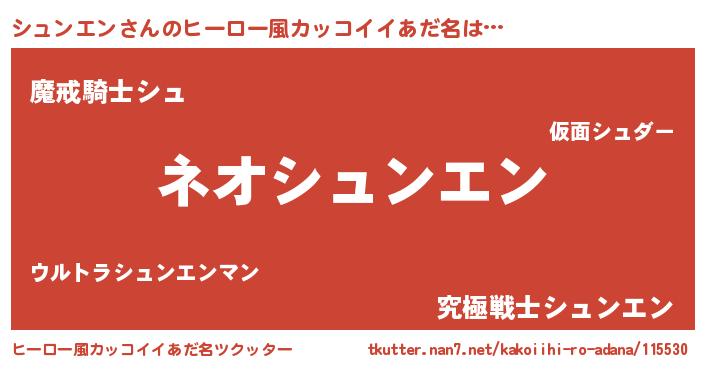 | ヘコむあだ名 | 『シュンエン(爆)』『シュ太郎』 |