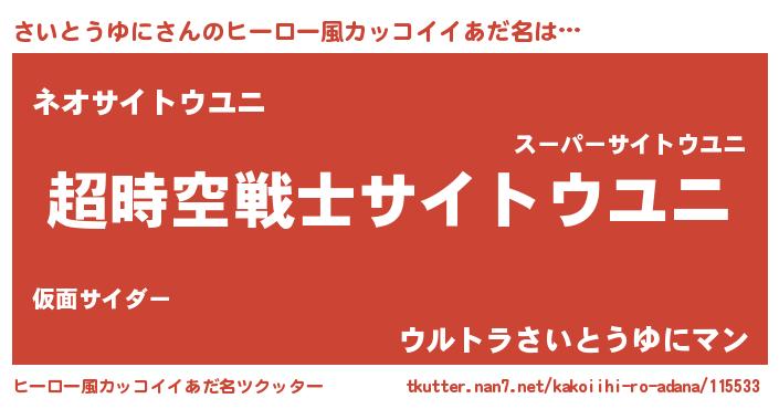 | 男性向けラノベタイトル風あだ名 | 『サイトウユニスレイヤー』 |