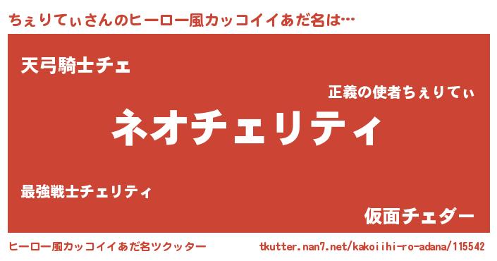 | 伝説のあだ名 | 『古より伝わる暗殺者ちぇりてぃ』 |