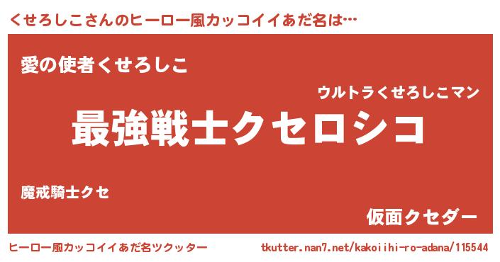 | 男性向けラノベタイトル風あだ名 | 『Re:くせろしこから始める異世界生活』 |