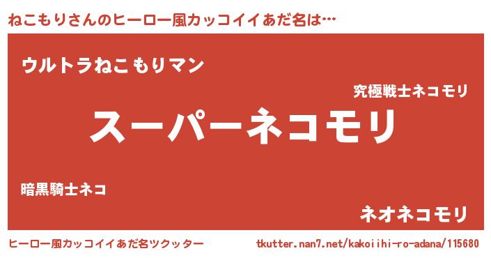 | 男性向けラノベタイトル風あだ名 | 『転生したらねこもりだった件』 |