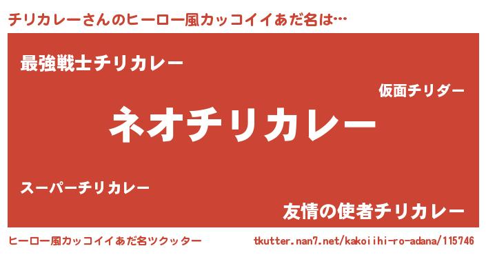 | 男性向けラノベタイトル風あだ名 | 『チリカレーという概念が存在しない退屈な世界 』 |