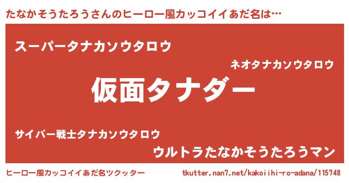 | 男性向けラノベタイトル風あだ名 | 『この素晴らしい世界にたなかそうたろうを!』 |