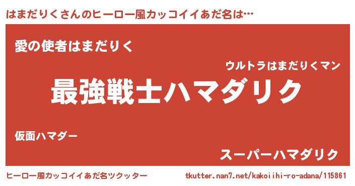 はまだりくさんのヒーロー風カッコイイあだ名をツクッター!