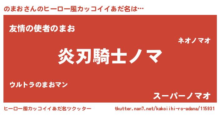 | 女子向けラノベタイトル風あだ名 | 『のまお様がみてる』『死神のまおの再婚』 |