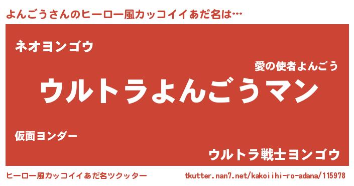 | 欧米人風あだ名 | 『よんごうクリステル』 |