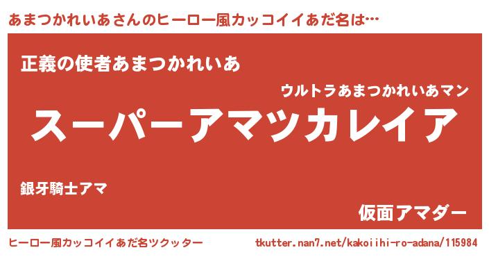| ツイッター | あまつかれいあさんのツイッターID『kikurage_man』 |