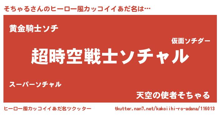 | 女子向けラノベタイトル風あだ名 | 『そちゃるなんてお断りですっ。』 |