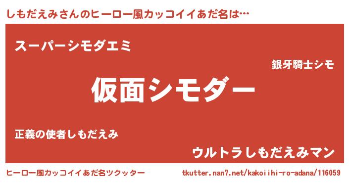 | 意味不明あだ名 | 『住所不定無職しもだえみ(65歳)』 |