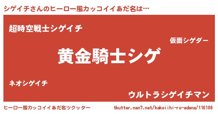 | 女子向けラノベタイトル風あだ名 | 『シゲイチは平凡を望む』 |