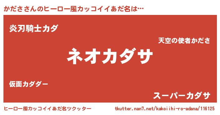 | 男性向けラノベタイトル風あだ名 | 『緋弾のカダサ』『カダサスレイヤー』 |