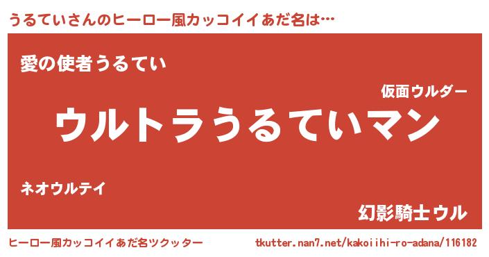 | ポケモン風あだ名 | 『ウルテダネ』『ウックウザ』 |