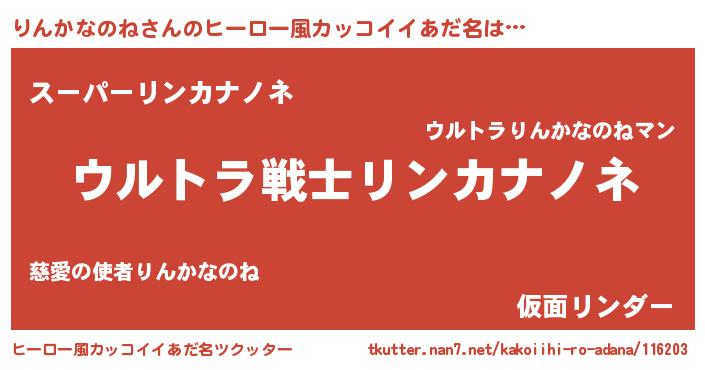 | 意味不明あだ名 | 『自称りんかなのね』 |
