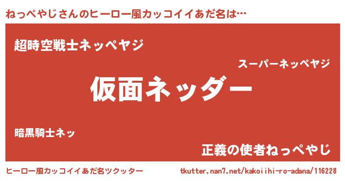 | 意味不明あだ名 | 『住所不定無職ねっぺやじ(93歳)』 |
