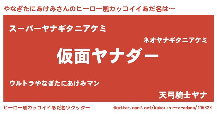 | 欧米人風あだ名 | 『ダレノガレやなぎたにあけみ』 |