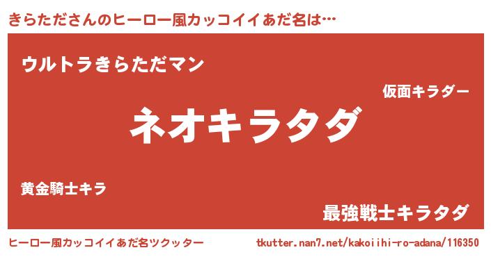 | 意味不明あだ名 | 『永久保存きらただ』『自称きらただ』 |