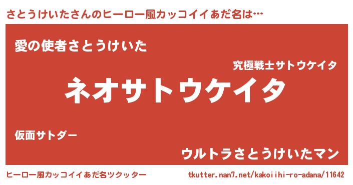 | 男性向けラノベタイトル風あだ名 | 『うちのさとうけいたが世界を掌握している!』 |