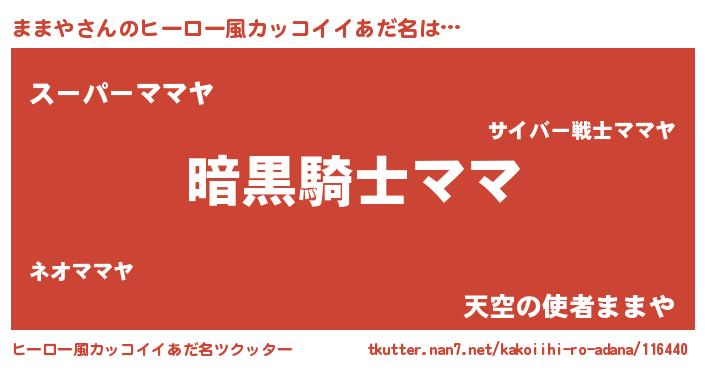 | 胡散臭い通販商品みたいなあだ名 | 『信頼と実績のサプリメント…その名も「ままや」』 |