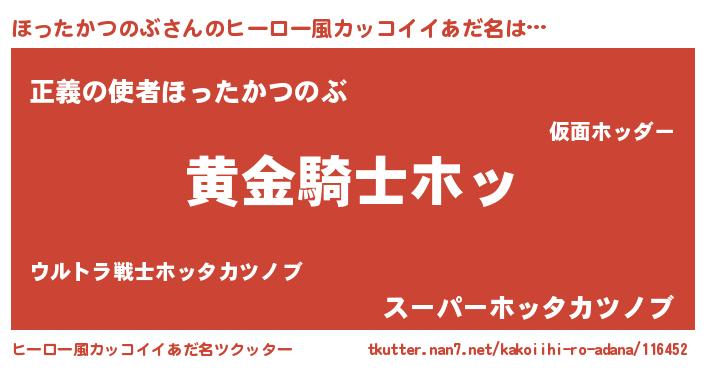 | 男性向けラノベタイトル風あだ名 | 『ダンジョンにほったかつのぶを求めるのは間違っているだろうか』 |