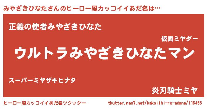 | ファンタジー風あだ名 | 『エターナルミヤザキヒナター』 |