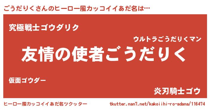 | 胡散臭い通販商品みたいなあだ名 | 『お金では代えられないイリジウム磁石…その名も「ごうだりく」』 |