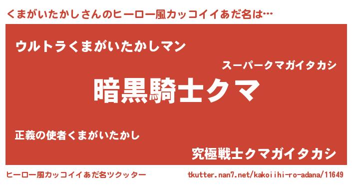 | 男性向けラノベタイトル風あだ名 | 『クマガイタカシスレイヤー』 |
