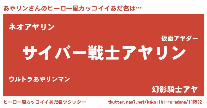 | 意味不明あだ名 | 『自称あやリン』『永久保存あやリン』 |