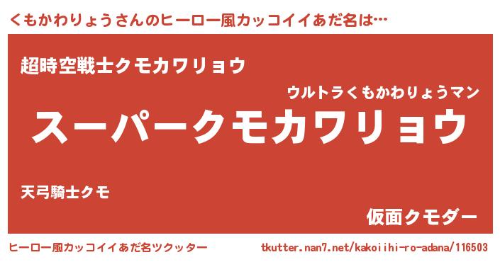 | ヘコむあだ名 | 『くもにゅー』『つくし』『くもを』 |