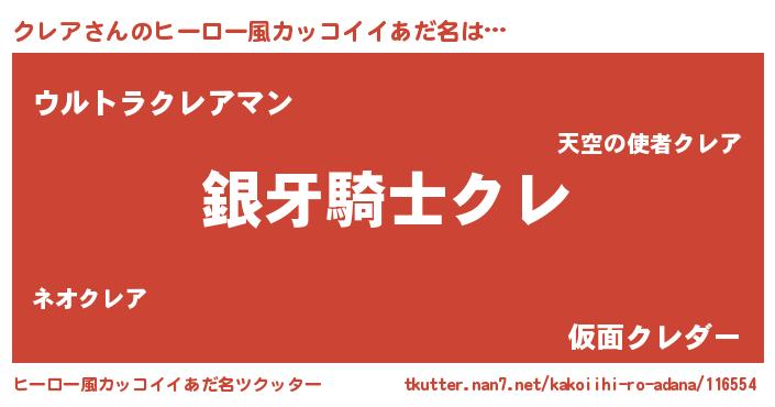 | 男性向けラノベタイトル風あだ名 | 『クレアの嫁は女の子じゃないと思った?』 |