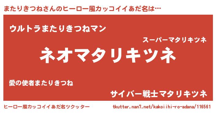 | 伝説のあだ名 | 『古より伝わる勇者またりきつね』 |