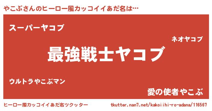 | 男性向けラノベタイトル風あだ名 | 『Re:やこぶから始める異世界生活』 |