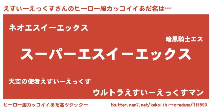 | 女子向けラノベタイトル風あだ名 | 『えすいーえっくす姫と円卓の騎士』 |