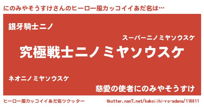 | ポケモン風あだ名 | 『ニノセウス』『ヒニノミヤソウスケ』 |
