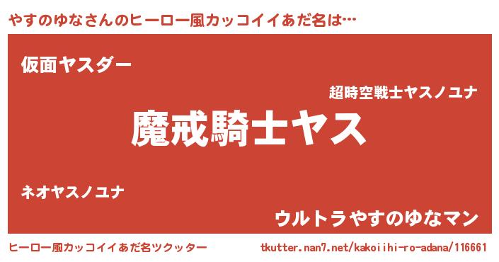 | 男性向けラノベタイトル風あだ名 | 『ダンジョンにやすのゆなを求めるのは間違っているだろうか』 |