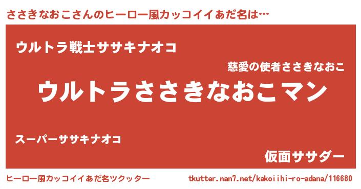 | 男性向けラノベタイトル風あだ名 | 『やはりささきなおこの青春ラブコメはまちがっている 』 |
