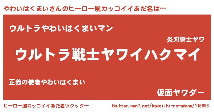 | 意味不明あだ名 | 『自称やわいはくまい』 |