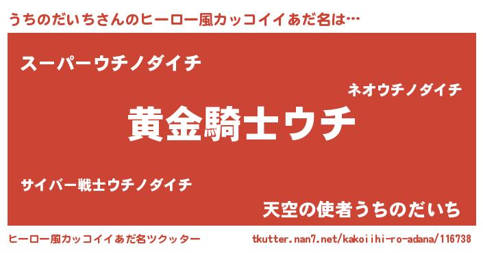 | 胡散臭い通販商品みたいなあだ名 | 『信頼と実績のサプリメント…その名も「うちのだいち」』 |