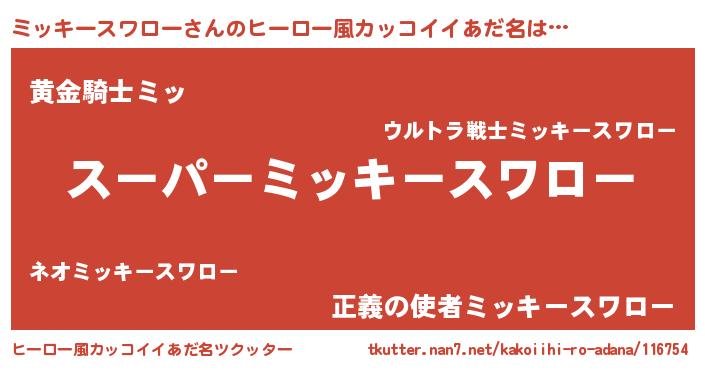 | 男性向けラノベタイトル風あだ名 | 『ミッキースワローの憂鬱』 |
